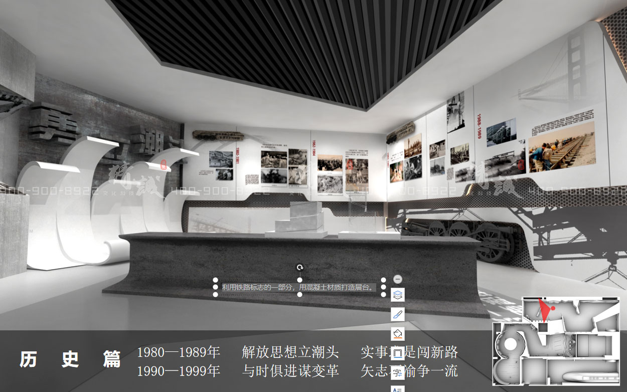 1990—1999年 與時(shí)俱進(jìn)謀變革 矢志不渝爭一流:利用鐵路標(biāo)志的一部分,用混凝土材質(zhì)打造展臺。
