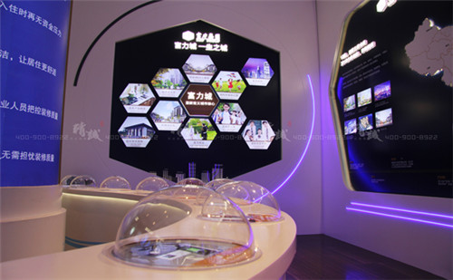西安富力地產的本次品牌展覽館主要以紫藍色和白色的背景組成,下面小編帶大家一起來看看展示效果。
