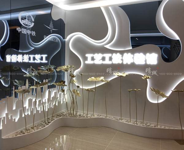 立體字是整個(gè)工法館展廳的核心展項(xiàng),烘托整個(gè)展廳的科技感,體驗(yàn)感。沙盤和弧幕配合使用,展示全球的項(xiàng)目案例及重大業(yè)績(jī),讓參觀者一目了然,感受震撼的體驗(yàn)。