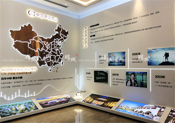 陜西精誠(chéng)展覽裝飾在中鐵十九局集團(tuán)國(guó)際公司展廳設(shè)計(jì)上突出科技性、藝術(shù)性、有突破、有創(chuàng)新、聲光電數(shù)字技術(shù)結(jié)合的全面展示,體現(xiàn)以人為本的參觀理念,布局合理功能分區(qū)明確,充分考慮觀眾行動(dòng)路線和視覺(jué)感受,展示空間規(guī)劃有前瞻性,與周圍環(huán)境協(xié)調(diào),整體自上而下的突出中鐵文化氛圍。數(shù)字互動(dòng)結(jié)合多媒體技術(shù)綜合運(yùn)用,強(qiáng)調(diào)立體、生動(dòng)、感染力。