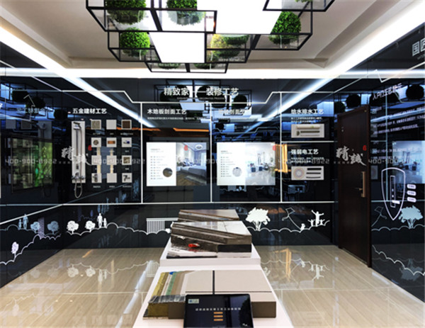 此處利用絢麗的藍(lán)色燈光切線勾勒出公司的光輝歷程,數(shù)字媒體觸控屏與液晶顯示屏聯(lián)動(dòng)結(jié)合展板畫面多維度展示企業(yè)發(fā)展光輝歷程