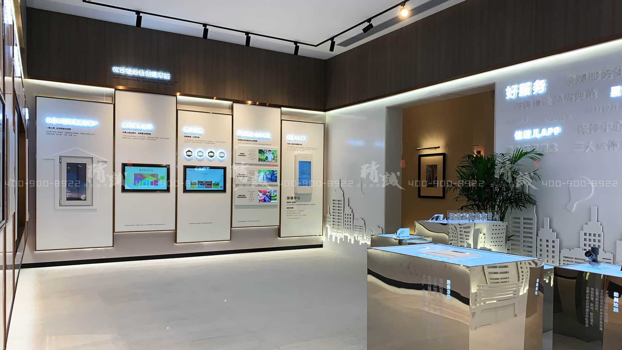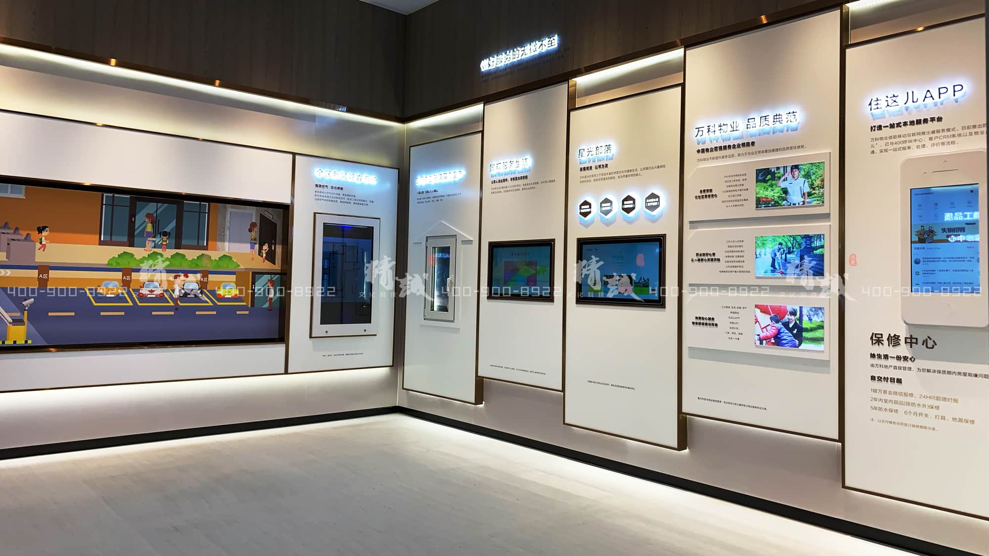 細(xì)微知著,墻面展板展現(xiàn)了萬(wàn)科為業(yè)主提供無(wú)微不至的好服務(wù):有友好和諧的鄰里活動(dòng),有全國(guó)百?gòu)?qiáng)的物業(yè)為業(yè)主提供便捷的高品質(zhì)居住生活,更有業(yè)主專屬客戶端——“住這兒APP”為各位業(yè)主提供一站式的本地服務(wù)。