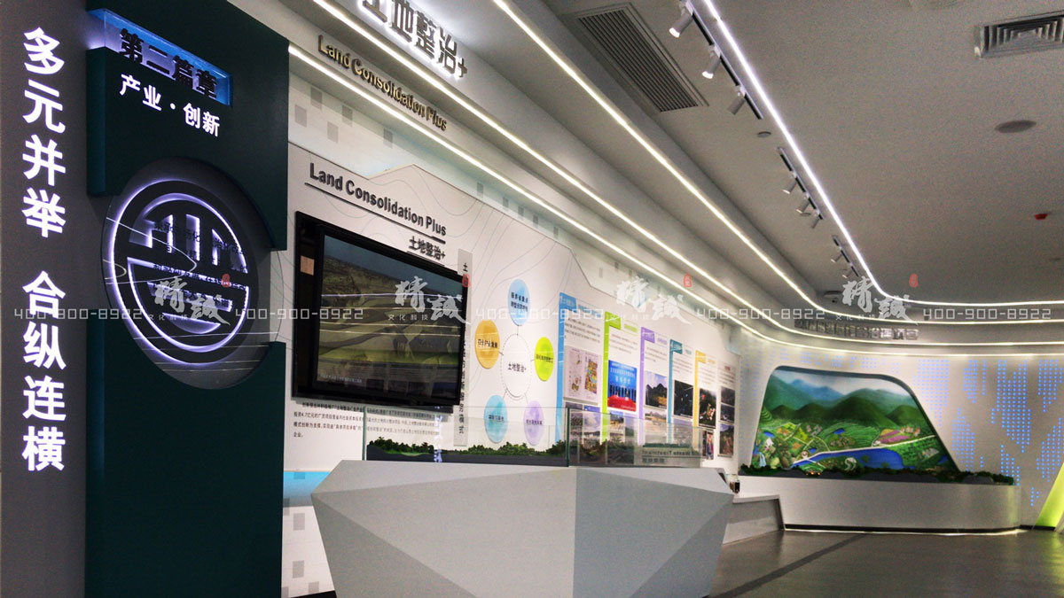 精誠(chéng)展覽打造的山西大地環(huán)境投資控股有限公司企業(yè)展廳,把綠水青山理念融入整體設(shè)計(jì)風(fēng)格,以土地改造理念貫穿整館。