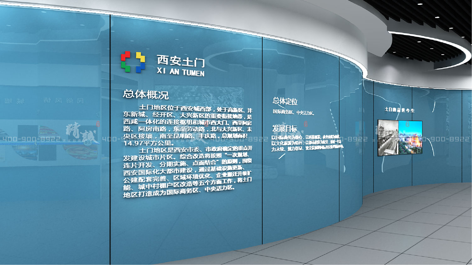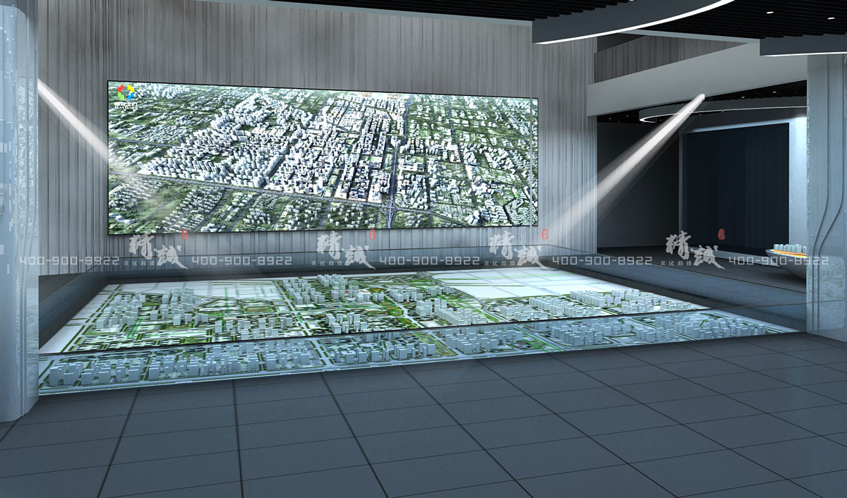 在原有總規(guī)沙盤的基礎(chǔ)上加上搖頭燈,配合原有多媒體系統(tǒng)展示土門的總體規(guī)劃、土門商圈發(fā)展規(guī)劃(產(chǎn)業(yè)布局,商貿(mào)發(fā)展規(guī)劃)。