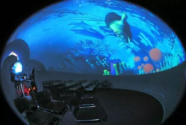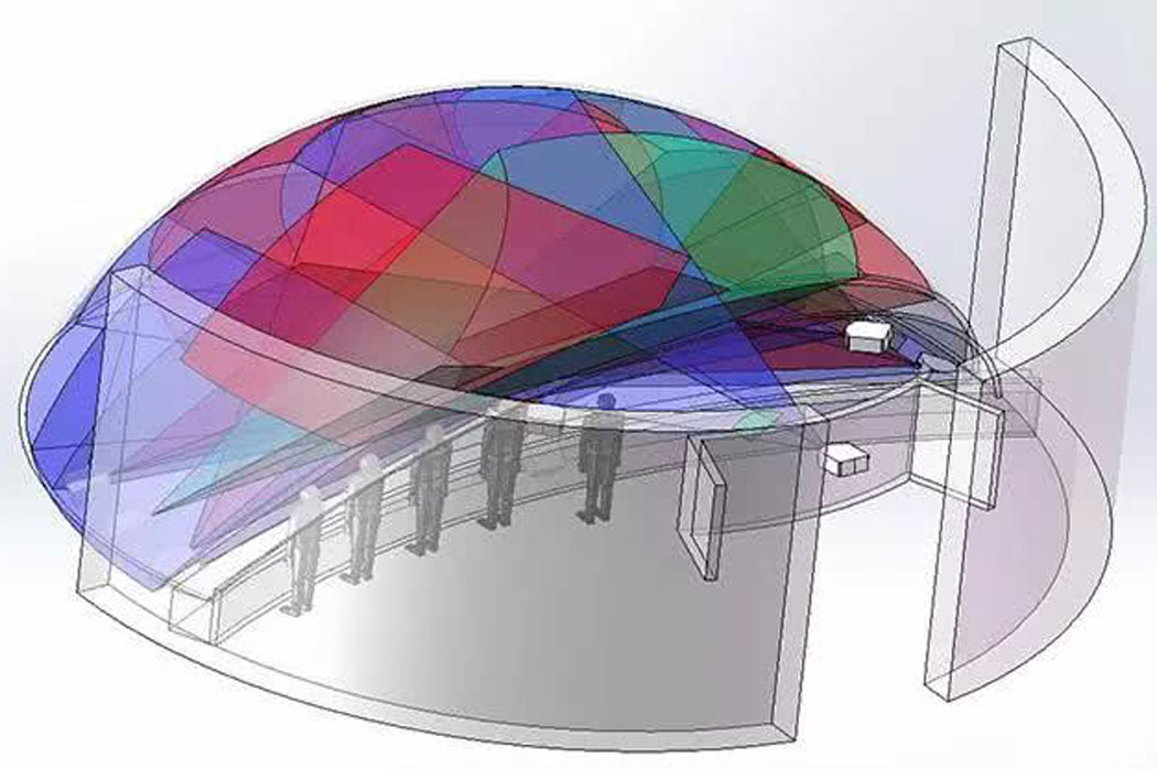 球幕影院又稱“圓穹電影”或“穹幕電影”。20世紀(jì)70年代出現(xiàn)的一種大銀幕電影。拍攝及放映均采用超廣角魚眼鏡頭,觀眾廳為圓頂式結(jié)構(gòu),銀幕呈半球形,觀眾被包圍其中,視銀幕如同蒼穹,給觀眾帶來獨特的視覺沖擊和環(huán)繞立體的沉浸式體驗。
