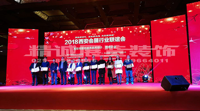 3月20日下午,由西安市會(huì)展行業(yè)協(xié)會(huì)主辦的“2018西安會(huì)展行業(yè)聯(lián)誼會(huì)”于曲江會(huì)議中心圓滿(mǎn)召開(kāi)。此次大會(huì)主要內(nèi)容包含2017年工作回顧,表彰2017年度西安市會(huì)展先進(jìn)個(gè)人、優(yōu)秀項(xiàng)目、優(yōu)秀企業(yè)、主題演講以及會(huì)展企業(yè)聯(lián)誼互動(dòng)等環(huán)節(jié)。精誠(chéng)展覽裝飾用獨(dú)具特色的設(shè)計(jì)方案和卓越的施工品質(zhì),榮獲“西安市展覽展示優(yōu)秀設(shè)計(jì) 、搭建企業(yè)”榮譽(yù)獎(jiǎng)。