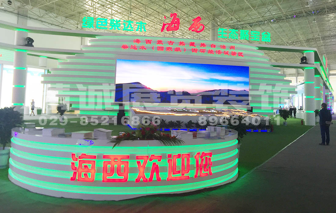 2018年,由工業(yè)和信息化部、國家市場監(jiān)督管理總局、中華全國供銷合作總社等以及全國各省市自治區(qū)主辦,由青海省人民政府承辦的“第十九屆中國·青海綠色發(fā)展投資貿(mào)易洽談會”——海西州展位位于青海國際會展中心A館,面積2369平方米。由精誠展覽裝飾負責策劃、設(shè)計、施工的青洽會·海西州展位項目于6月順利完成。