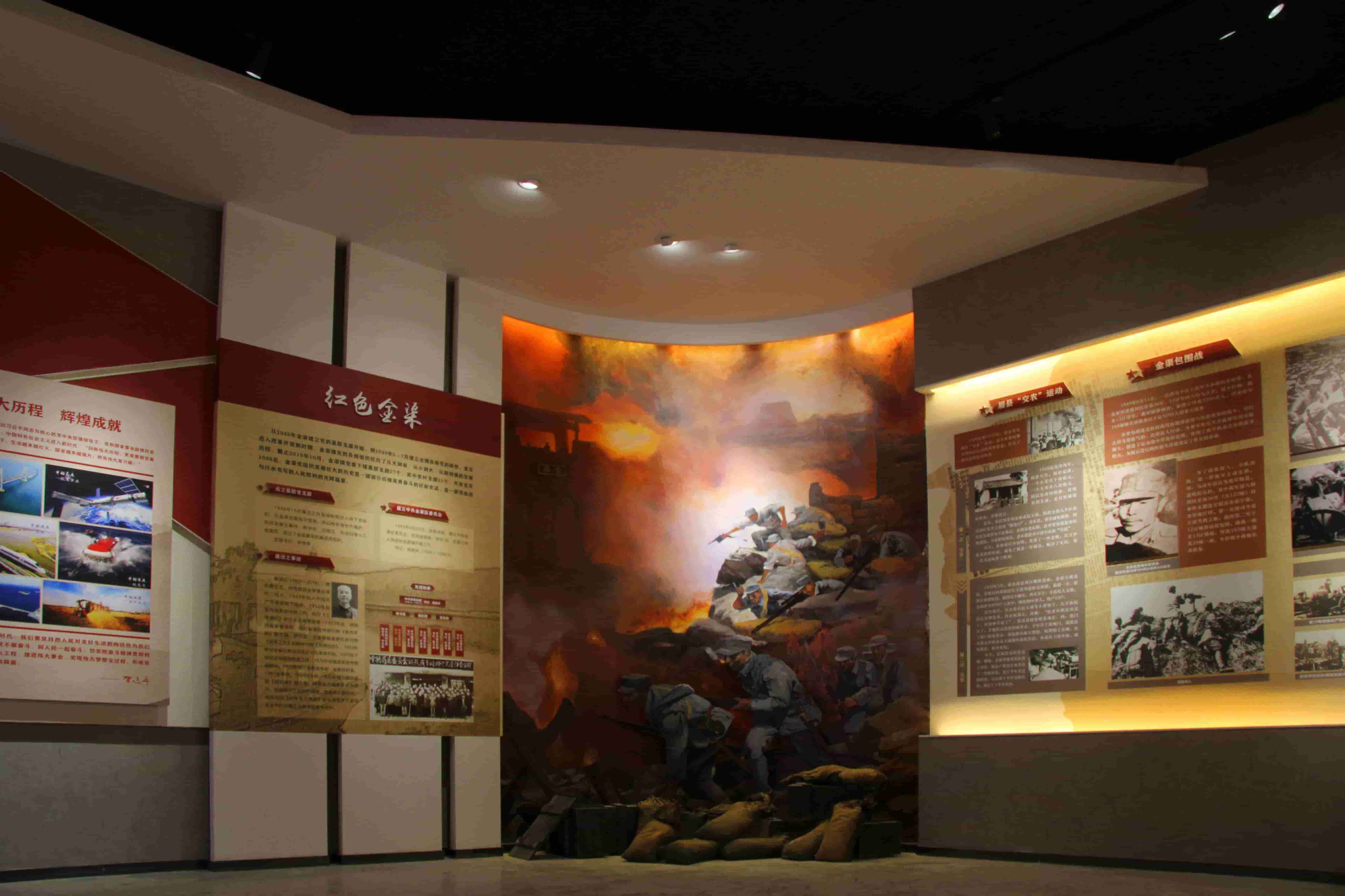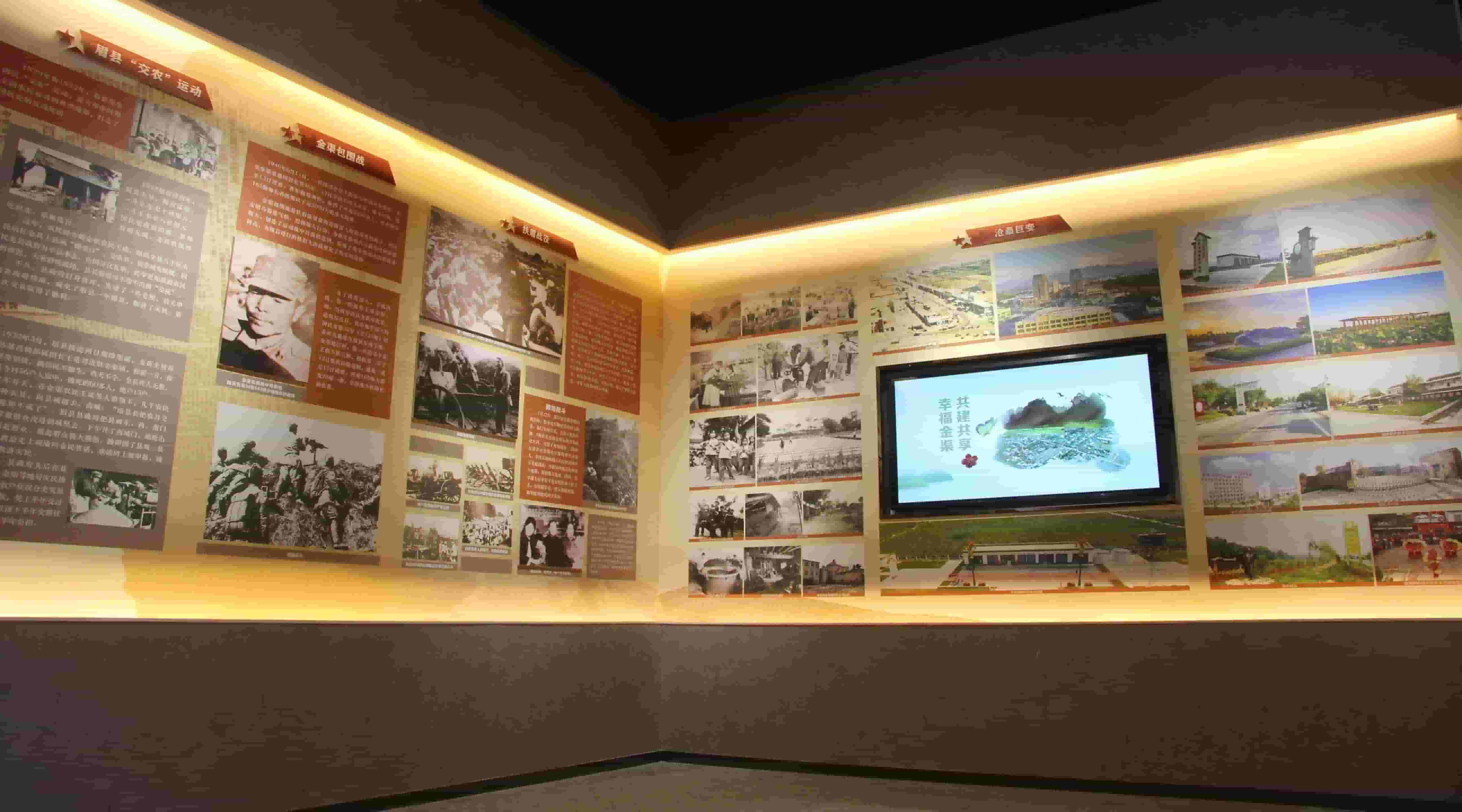 墻面展板通過圖文方式展示了金渠古鎮(zhèn)人杰地靈的燦爛文化和歷史榮耀,同時(shí)通過半景畫場(chǎng)景搭建引出紅色金渠的革命史、滄桑巨變發(fā)展史,搭載電子觸摸屏,通過互動(dòng)形式了解關(guān)于金渠更多紅色歷史。