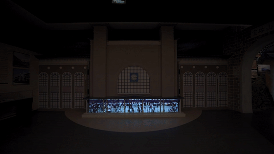 如延安火車站的展示,就采用場(chǎng)景還原結(jié)合數(shù)字多媒體的方式進(jìn)行了展現(xiàn),底部視頻生動(dòng)呈現(xiàn)了延安火車站1天24小時(shí)人流穿梭的畫面,帶給參觀者身臨其境的感受。