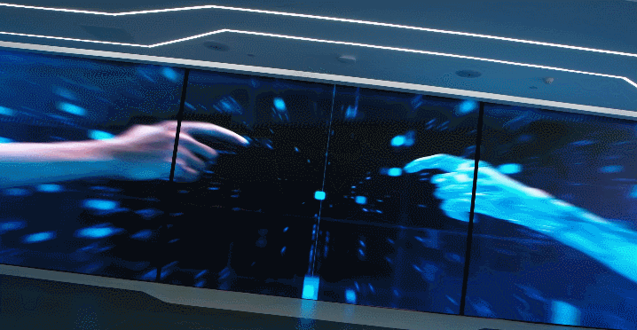 展廳C位的互動(dòng)開合屏化身動(dòng)態(tài)展墻,生產(chǎn)經(jīng)營(yíng)關(guān)鍵數(shù)據(jù)在此動(dòng)態(tài)可視,領(lǐng)導(dǎo)關(guān)懷與戰(zhàn)略實(shí)踐同屏輝映,大屏開啟間,承擔(dān)集團(tuán)“指揮大腦”的生產(chǎn)調(diào)度指揮中心豁然
