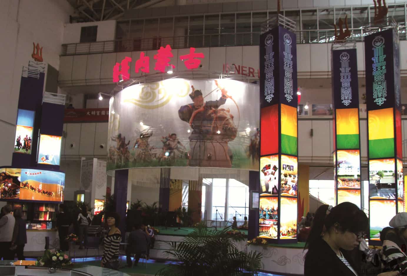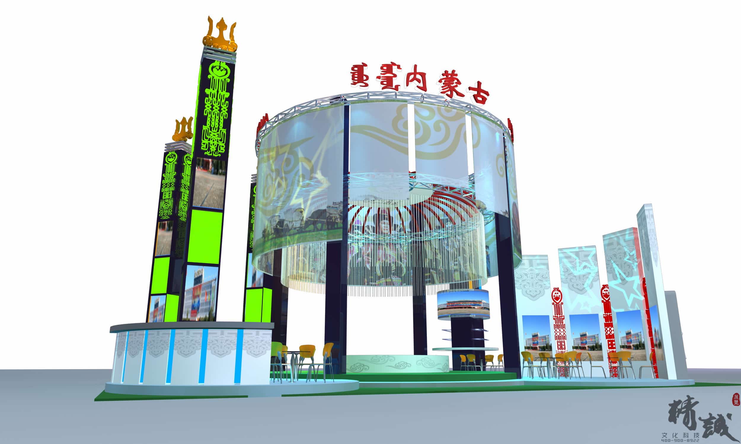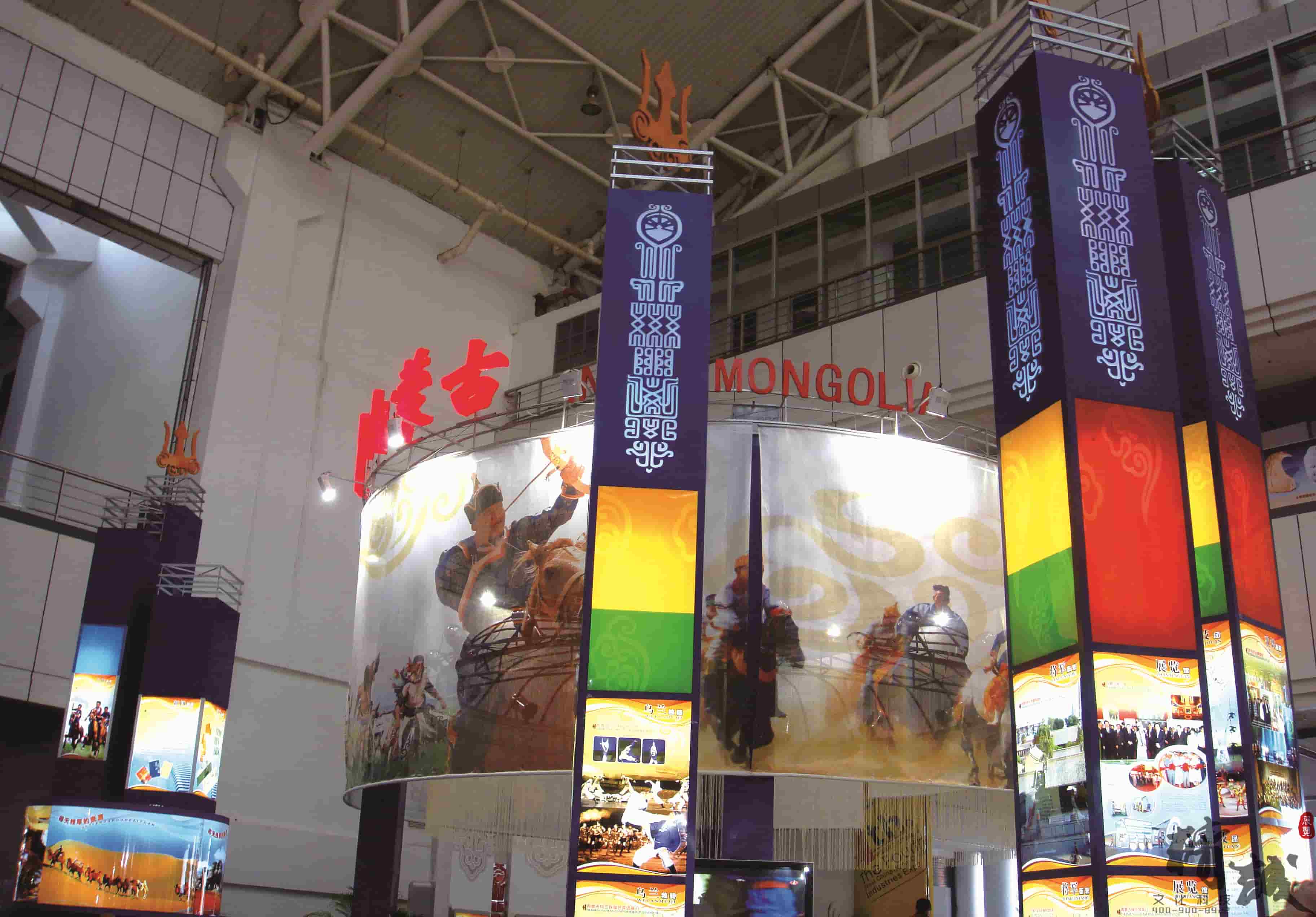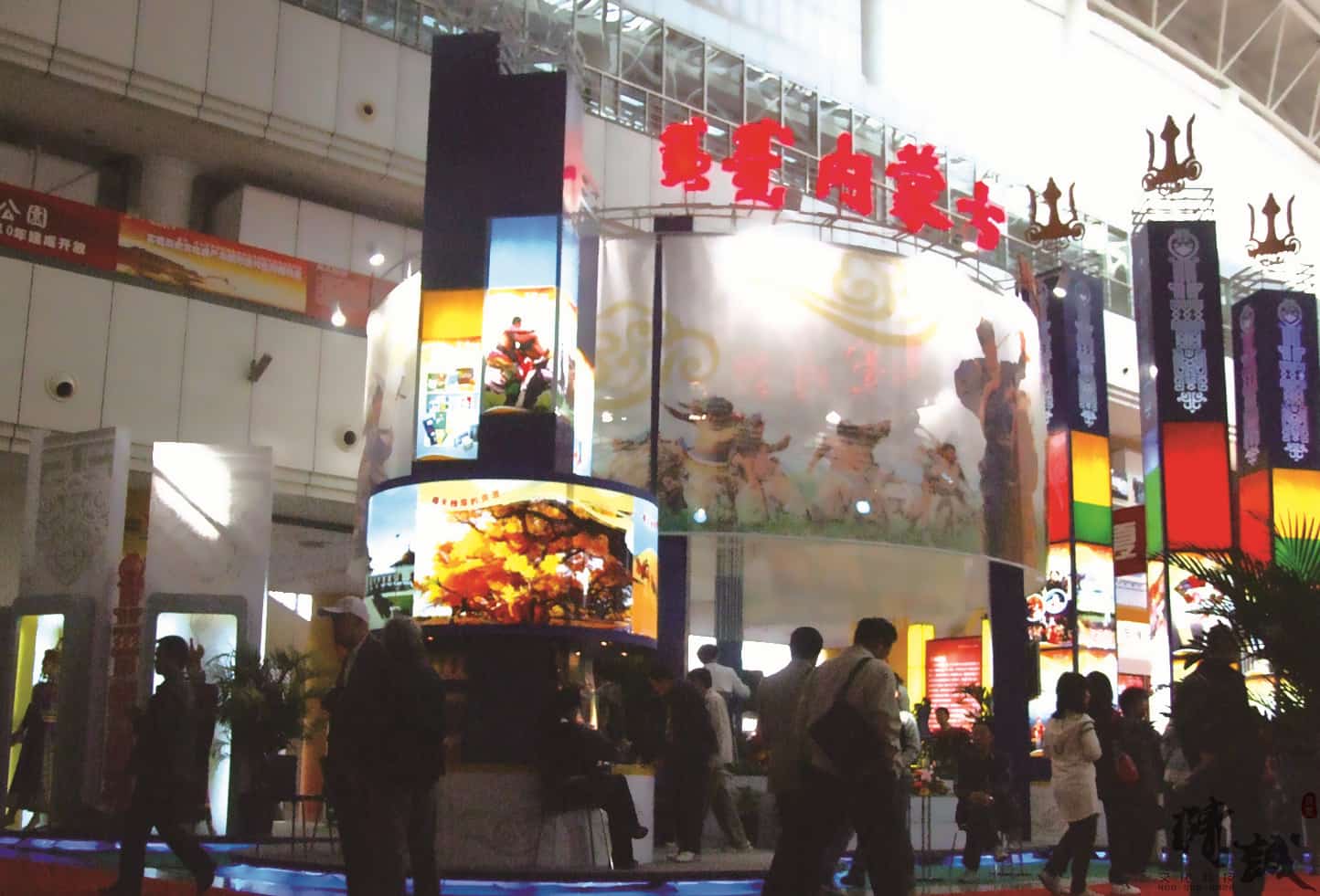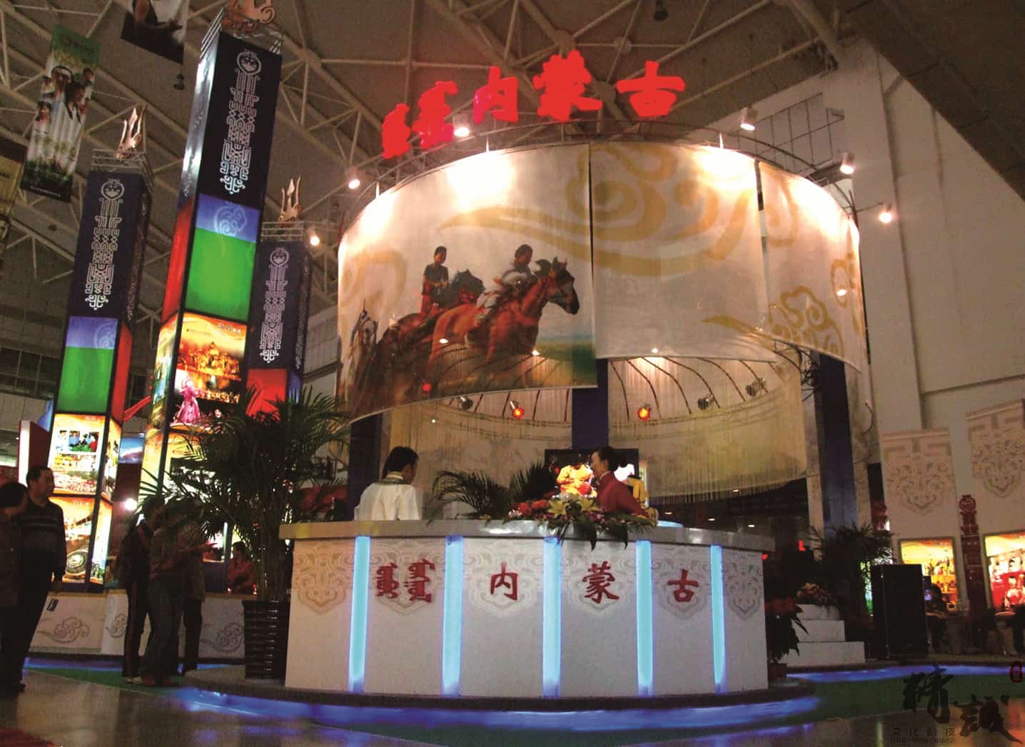 展位設(shè)計總體美觀大方,圖文并茂,富有民族特點,采用聲、光、電相結(jié)合的現(xiàn)代展示手法,做到“動態(tài)感”和“時代感”的完美結(jié)合?,F(xiàn)場的載歌載舞的熱情氣氛,展示出了草原的文化和獨具北疆特色的旅游基地。