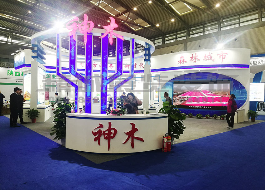 神木展位通過(guò)開(kāi)敞的布局和富有創(chuàng)意的承重結(jié)構(gòu)造型,結(jié)合燈箱、LED拼接屏,使整個(gè)展位形象充滿靈動(dòng)性。同時(shí)運(yùn)用科技元的素點(diǎn)綴,突出地方產(chǎn)業(yè)在科技的驅(qū)動(dòng)下,日益增長(zhǎng)的經(jīng)濟(jì)狀態(tài)。