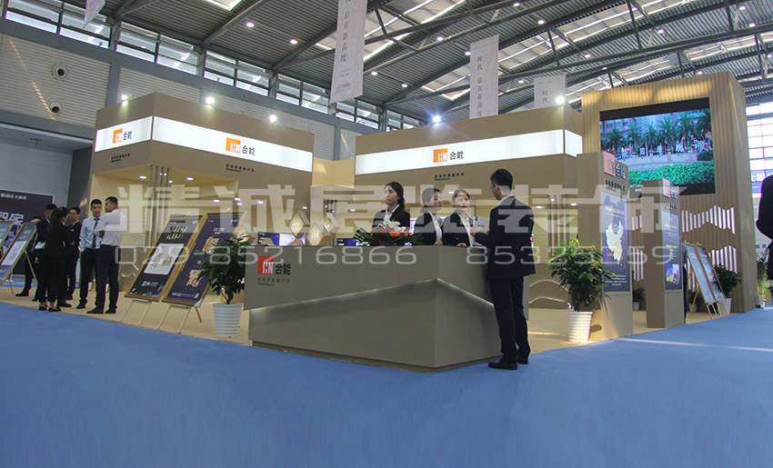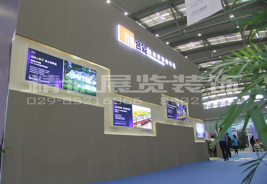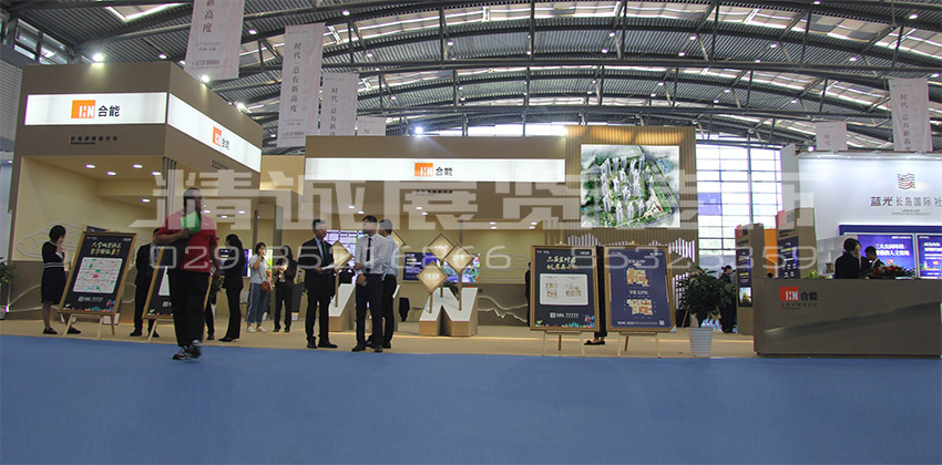 合能地產(chǎn)展位以象征現(xiàn)代、科技、創(chuàng)新的風格設(shè)計,通過設(shè)置LED大屏、燈箱展板、區(qū)域規(guī)劃圖等表現(xiàn)手段,并以建筑造型為展位外形,體現(xiàn)了堅持品質(zhì)匠心的精神。