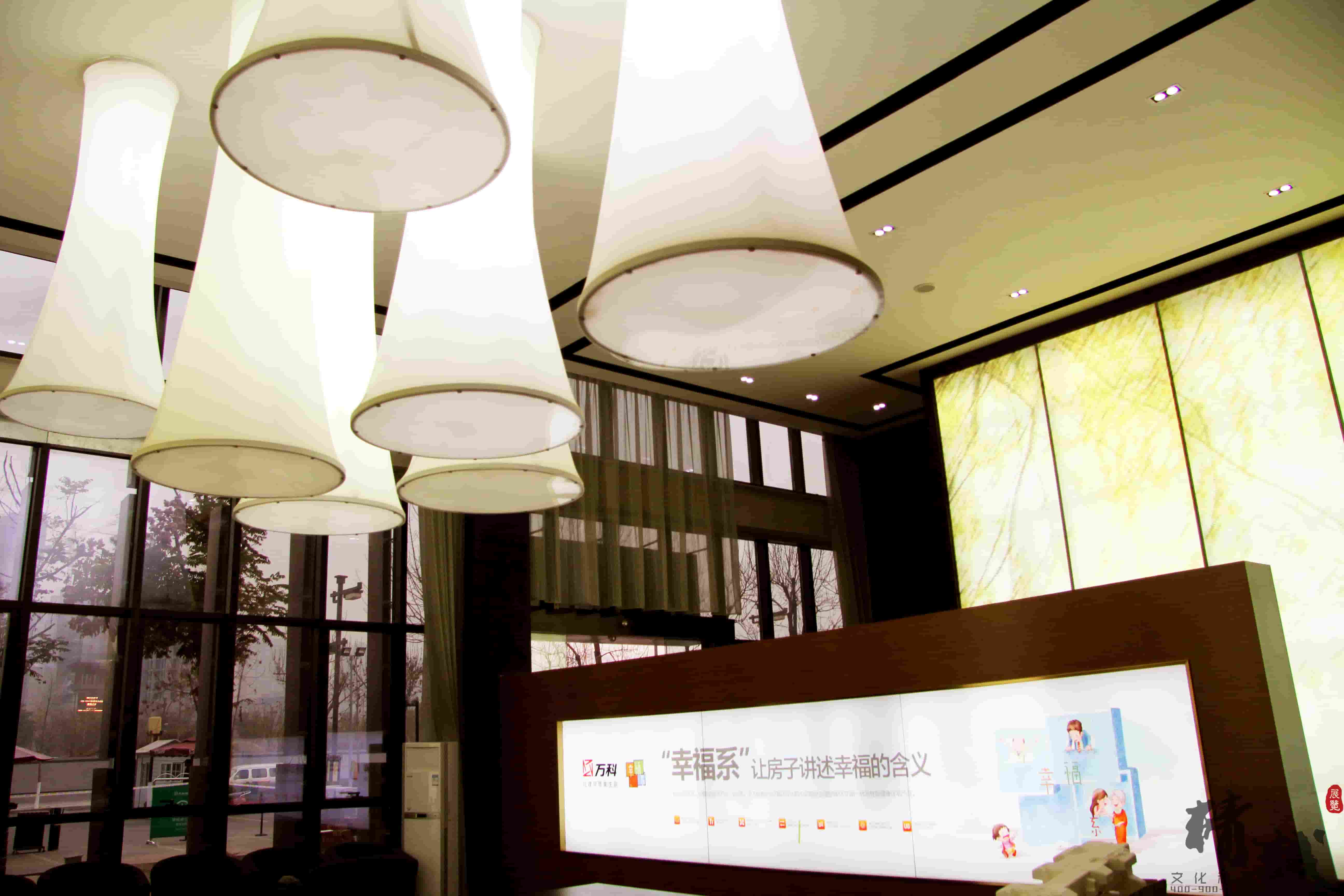 簡介—— 對于萬科金域東郡的裝飾裝修設(shè)計(jì)整個(gè)展廳色調(diào)以穩(wěn)重的棕色為主,用適當(dāng)?shù)慕鹕鳛辄c(diǎn)綴,顯得整個(gè)展廳高端、大氣。大廳頂部懸掛的