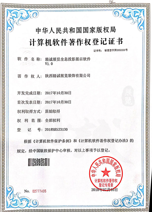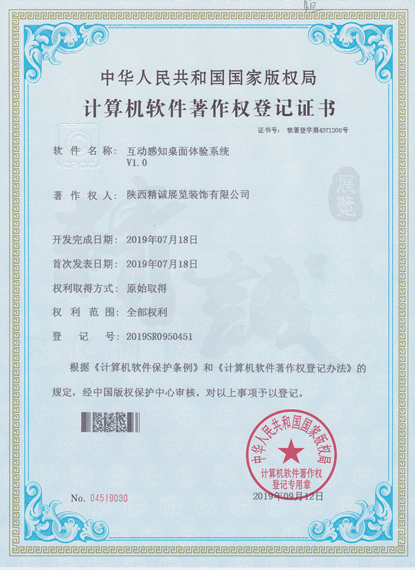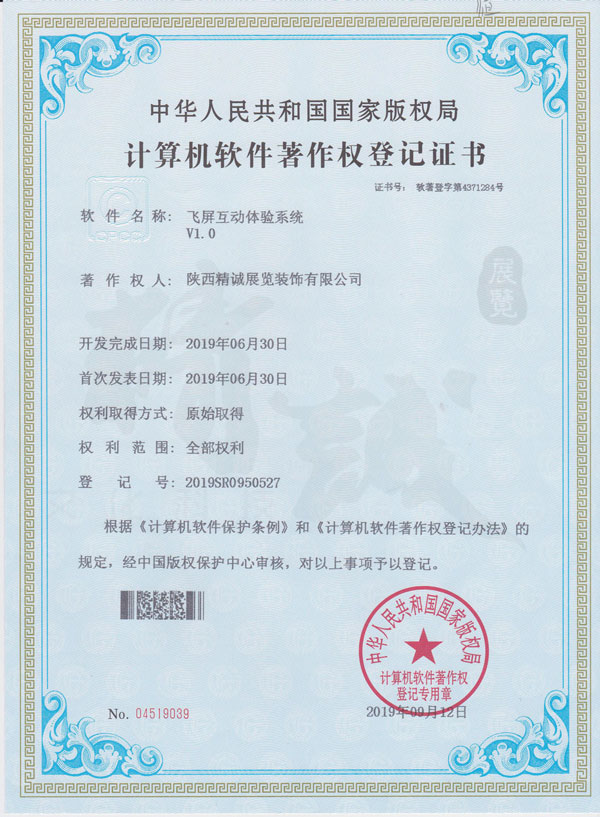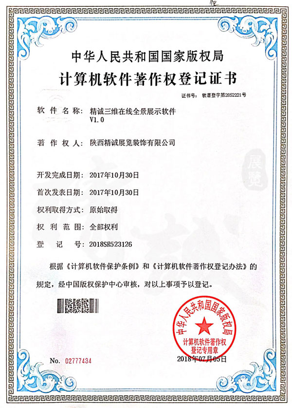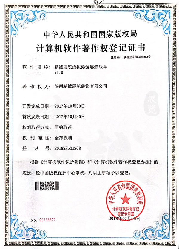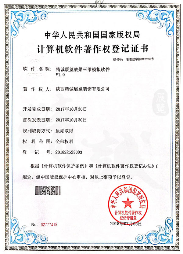 - 陜西精誠(chéng)展覽裝飾有限公司計(jì)算機(jī)軟件著作權(quán)登記證書 -