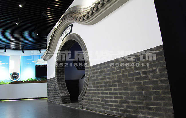 用徽派月亮門(mén)的古建筑形式來(lái)打造園林薈萃外墻,使其具有蘇州園林現(xiàn)場(chǎng)的氛圍。